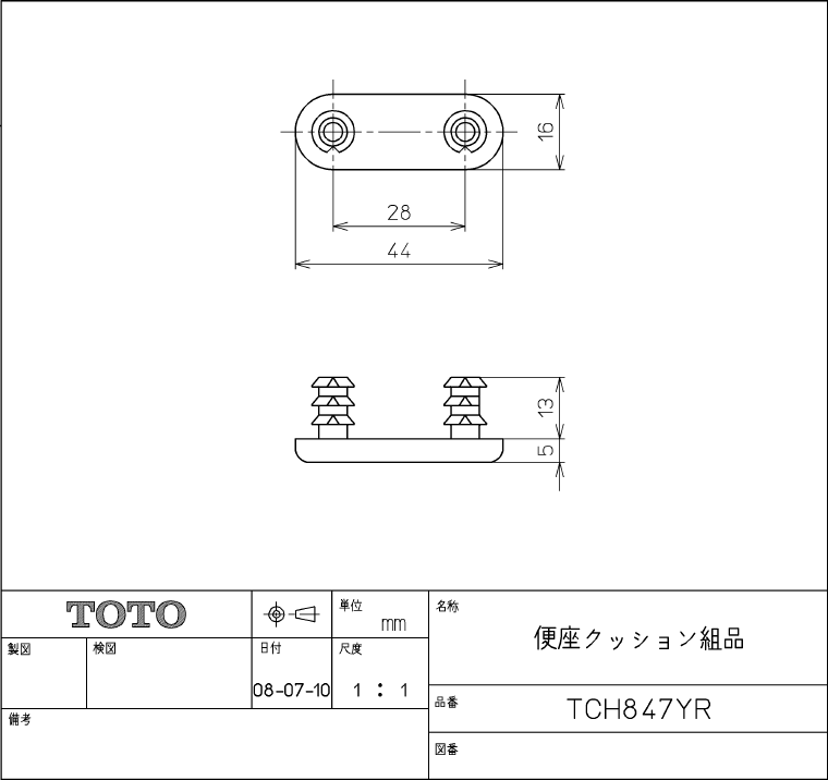 紛失したり、劣化した場合の補修用にお使いください ■ 適合便座 TOTO製便座でTCF108・109・113・123・222・223・230・231・240・241・250・251・252・253・254・255・260・261・265・266・302・303・312・313・322・323・393・650・651・660・661・670・671・680・681・770・771・775・776・780・781・873・2010・2011・2020・2021・6010・6011・6020・6021・6030・6031に適合 ※他のメーカー製や品番違いの便座には取付けできません ■ 適合部分 便座下と便器との接触部分専用 ■ 取付け方法 便座を開いて立てた状態で作業します。