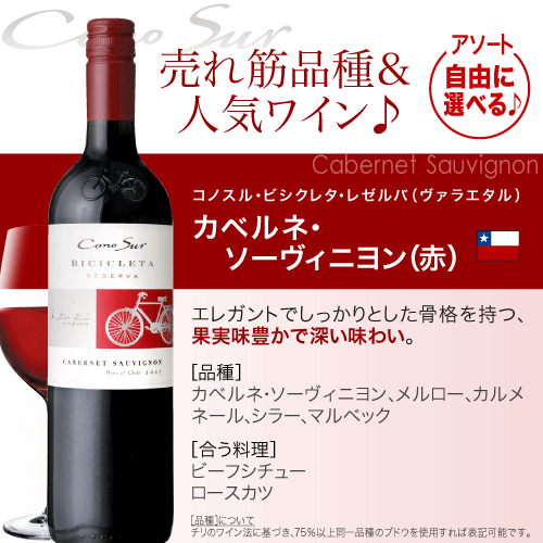 ワインセット 送料無料 好きな品種がよりどり選べる♪ 10本自由な組み合わせ! コノスル ビシクレタ レゼルバ(ヴァラエタル)アソート10本
